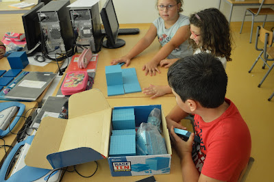 Na Sala da Matemática realizaram, em grupo, várias atividades com recurso ao material multibásico.